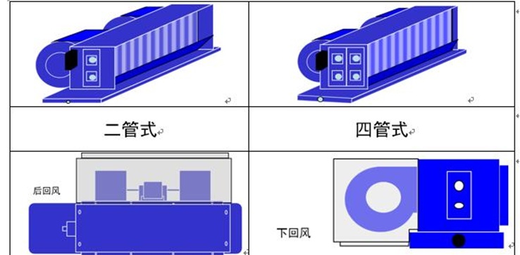 風(fēng)機(jī)盤管機(jī)組的類型和型號:風(fēng)機(jī)盤管機(jī)組按其形式可分為六種:水平安裝、水平開口安裝、垂直隱蔽安裝、垂直開口安裝、夾緊式、一般開口安裝等。