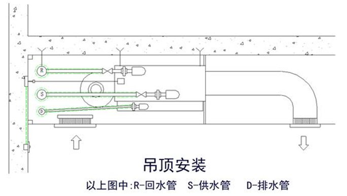 左右判斷模式:面對風(fēng)機(jī)盤管出風(fēng)口,冷熱介質(zhì)進(jìn)、出口管留在左側(cè),反之亦然。