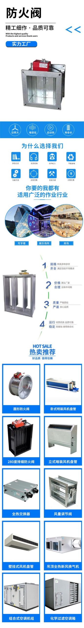 防火閥按其功能可分為:排煙閥、排煙防火閥、防火調節閥、防煙防火調節閥等多種結構。