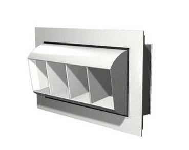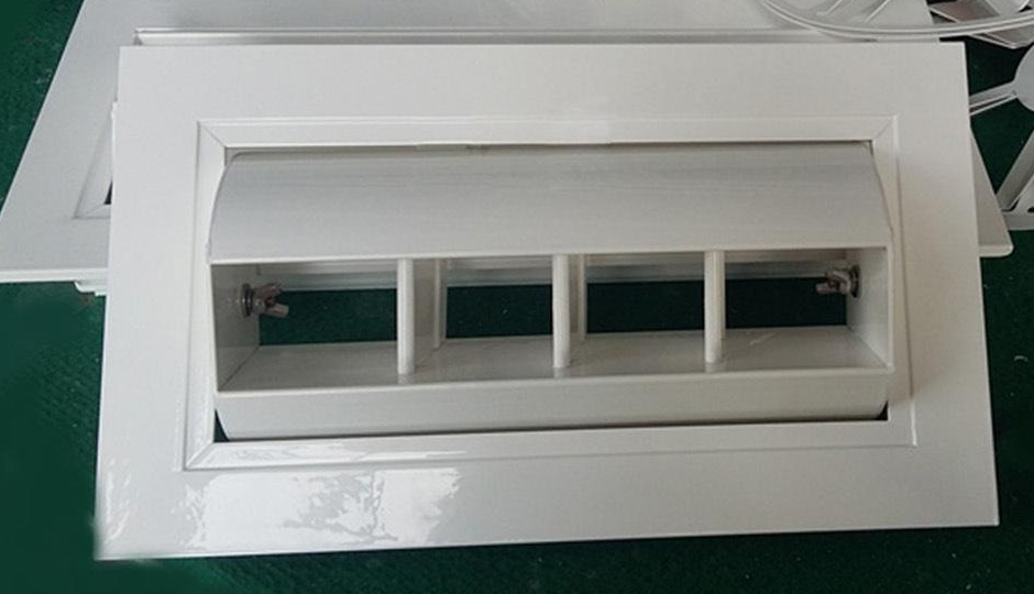 鼓形風(fēng)口具有送風(fēng)角度雙向調(diào)節(jié)的特點(diǎn),用作空調(diào)系統(tǒng)和通風(fēng)系統(tǒng)的送風(fēng)出口。風(fēng)口為矩形外框結(jié)構(gòu),外框內(nèi)套有鼓殼,鼓殼內(nèi)設(shè)有聯(lián)動(dòng)流線型活動(dòng)葉片。鼓殼可以在俯仰方向上沿水平軸在正負(fù)300度的角度范圍內(nèi)調(diào)節(jié)。連桿葉片可以在正負(fù)450度的角度范圍內(nèi)沿水平方向調(diào)節(jié)。改變空氣供應(yīng)的方向。風(fēng)量可以用風(fēng)量調(diào)節(jié)閥調(diào)節(jié)。